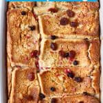 Tip: You may need to do more or less layers depending on the size of your baking dish. Just make sure that your raisins are buried under a final layer of bread on top, otherwise they will get burnt whilst baking.